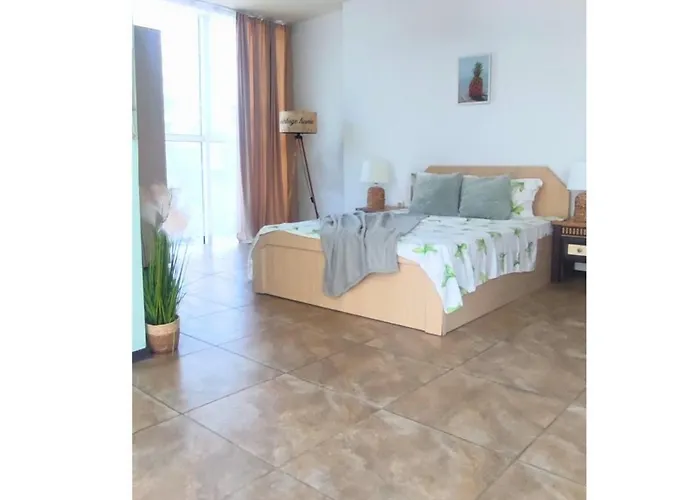 O bucătărie complet echipată este prevăzută cu frigider și sticlărie, precum și cu echipamente de preparate a ceaiului și a cafelei, asigurând o experiență culinară mai bună. Apartmentul Апартамент Flame Apartment se află la 15 minute de mers pe jos de stația de autobuz Sunny Beach.